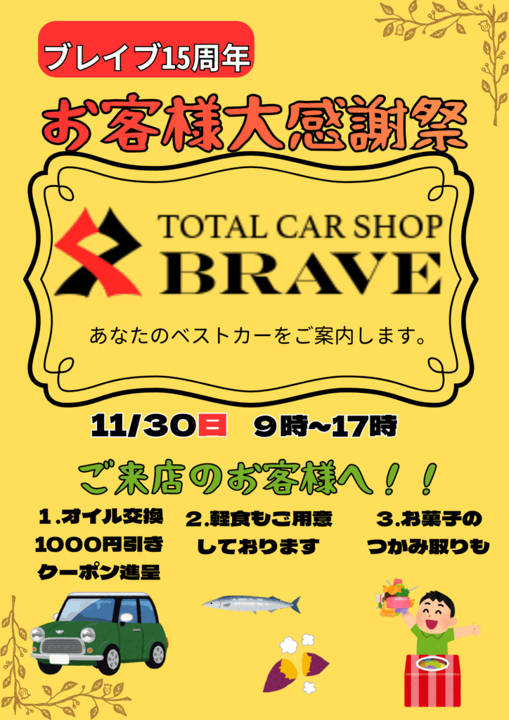 充実のカーライフをお過ごしいただくために、株式会社ブレイブ が貴方の愛車をトータルサポート!